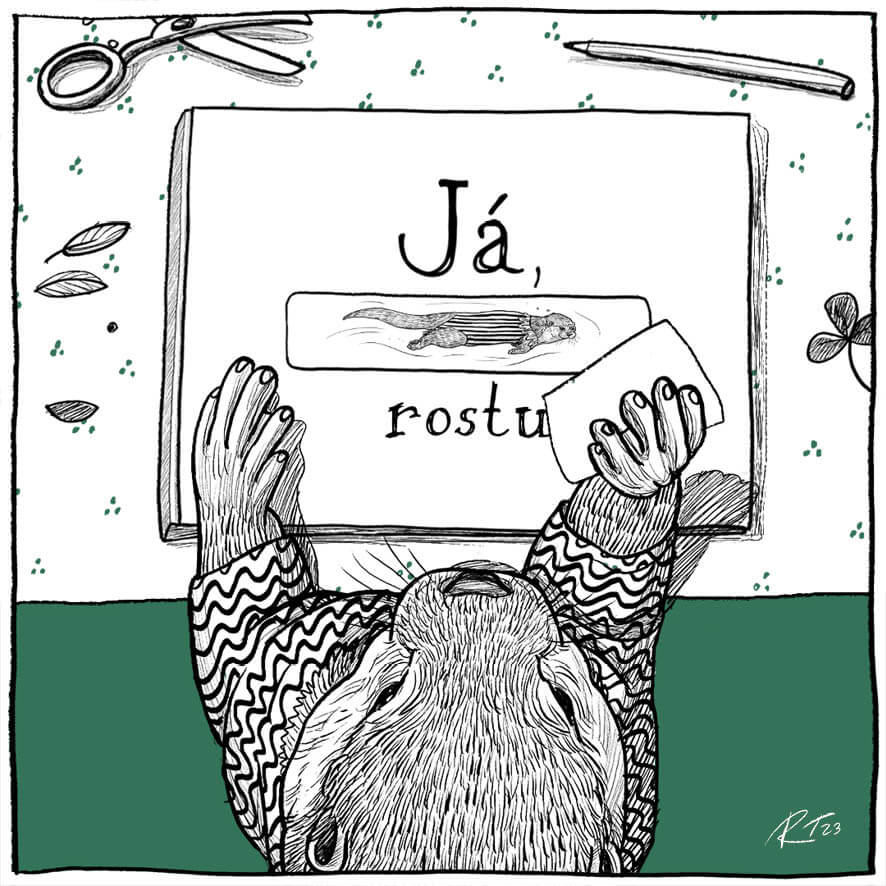 Kniha Já, rostu je pokračováním naší knihy „Já, miminko“ a je určená pro vzpomínky dětí od 2 do 6 let, končí nástupem do školy. Najdete v ní kamarádku našeho mývala, vydru, která vás bude touto vzpomínkovou knihou pro děti provázet! V knize najdete originální texty, které vytvořila Sebastiána Chomiszak, a ručně psané písmo, které stejně jako celou vizuální podobu knihy a vydří ilustrace, vytvořila ilustrátorka a grafička, Renáta Tšponová.